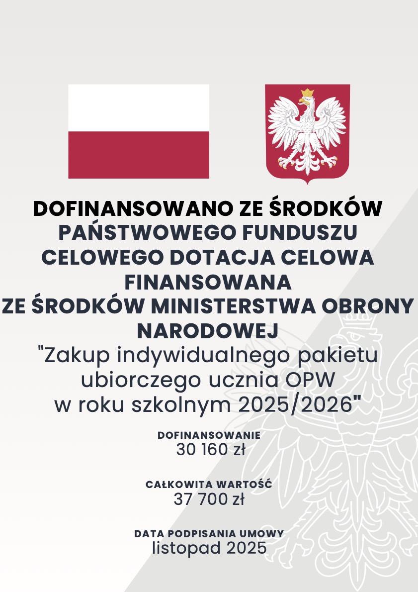 "Zakup indywidualnego pakietu ubiorczego ucznia OPW w roku szkolnym 2025/2026" - kwota dofinansowania 30.160,00 zł